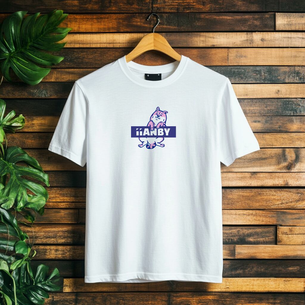 iiANBYの「iiANBY_shibaT_BlueLogo White」です。ブルーの柴犬ロゴがさわやかな印象を与えるアイテムです。カタチ、厚さ、着心地が人気のUnited Athle7.1オンスTシャツ生地を採用しており、透け感がなく、オーバーサイズでリラックスしたシルエットを楽しめます。